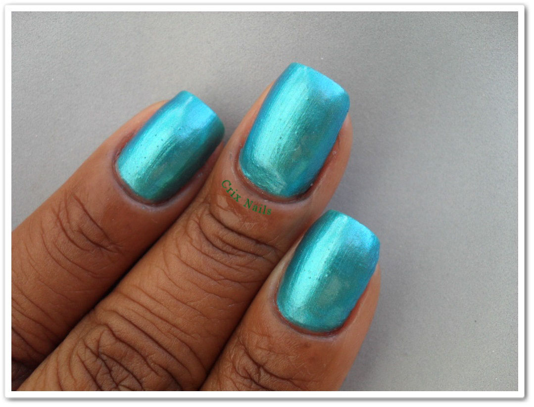 O esmalte tem boa pigmentação, o acabamento é lindo, um efeito cromado, brilhante. O tom de azul perfeito. Secagem rápida e pincel muito bom para esmaltação.